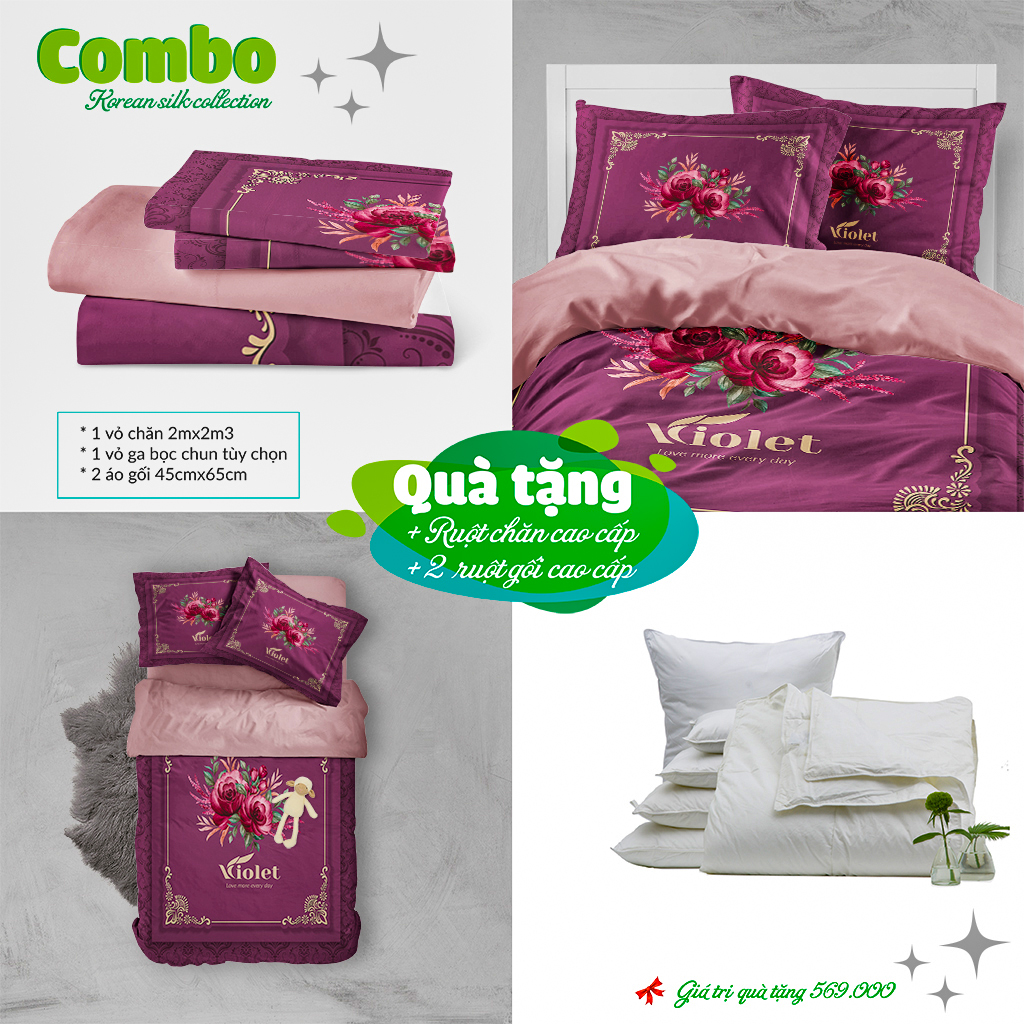 + 1 vỏ chăn size: 200cm x 230cm